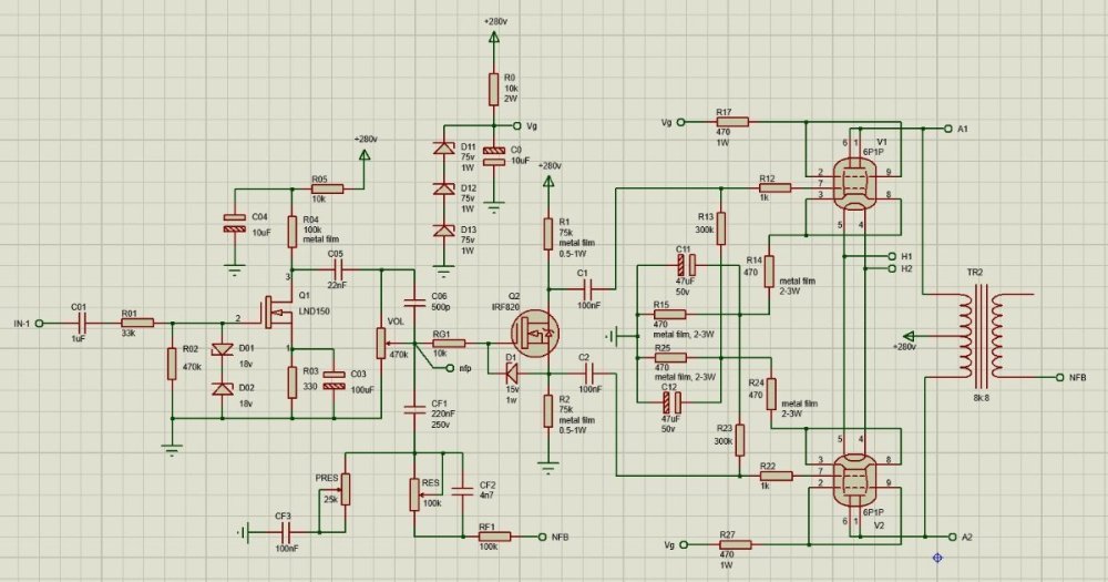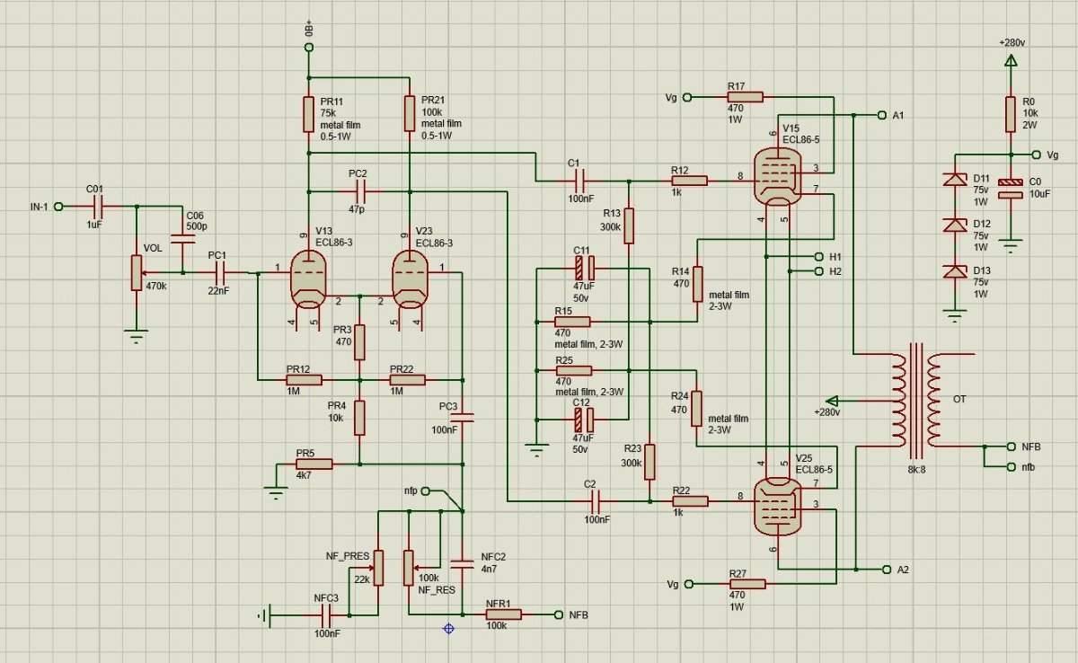 Схеми варианти крайни стъпала. 6П1П ECL 86 Още една кутия, вкл. шаси от еталбонд, за амп с 6П6С (6V6) Мисля че стана доста прилично шаси (лесно пробиваемо) от еталбонд, като останалата част от кутията. Схемата не съм я нахвърлял, но има допълнително гнездо за лампа двоен триод, split tail фазоинвертер.Няма да има операционни, нито lnd150 предусилвател, само буфери с irf820. И ще пробвам да го направя обемен монтаж на реглети от текстолит, възможно по-винтидж. Захранването няма да стане така обаче - стабилизирано на отоплението и капацитивен умножител с IRF820, ще иска някакви платки...